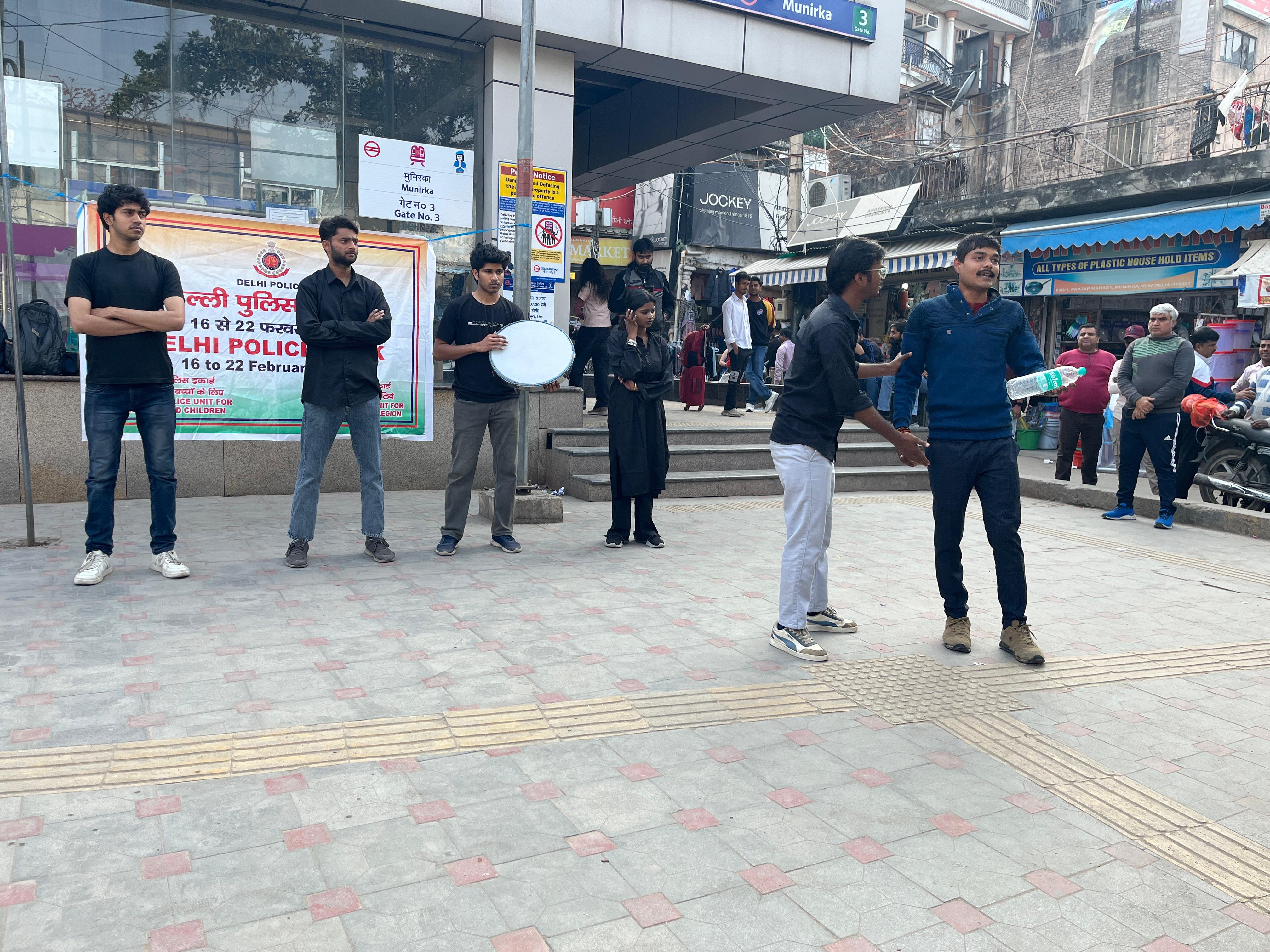 During Delhi Police week SPUWAC organized Women Safety Awareness, Nukkad Natak at Vasant Kunj, R.K. Puram (Slum Area), and Khan Market on February 20-22, 2026. The street plays spread awareness on: Women’s safety, legal rights, Cyber safety and Domestic violence prevention.